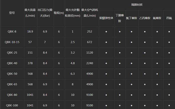 QBK气动隔膜泵是我公司开发的第三代气动隔膜泵,具有使用寿命长,不会停顿等优点,它既能抽送流动的液体,又能输送一些不易流动的介质,具有自吸泵、潜水泵、屏蔽泵、泥浆泵和杂质泵等输送机械的许多优点。